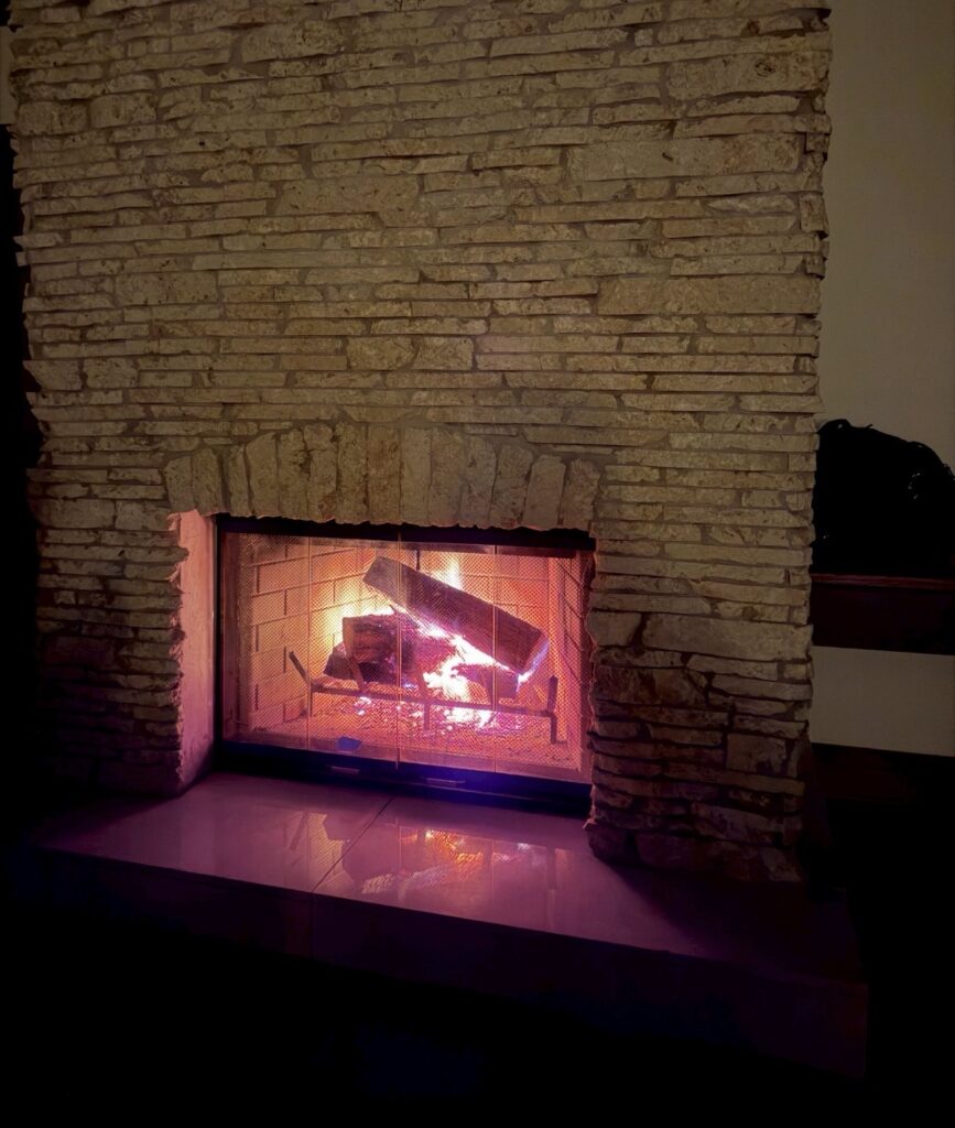 暖炉は落ち着きます(薪は本物です)