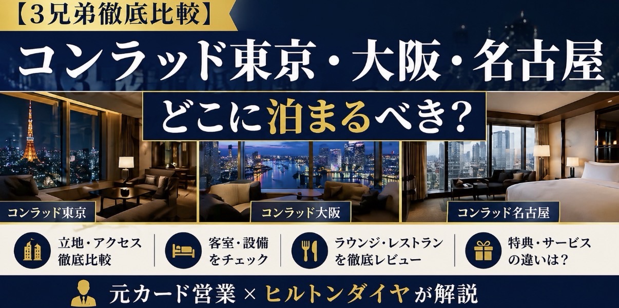 【3兄弟徹底比較】コンラッド東京・大阪・名古屋|どこに泊まるべき?元カード営業×ヒルトンダイヤが解説