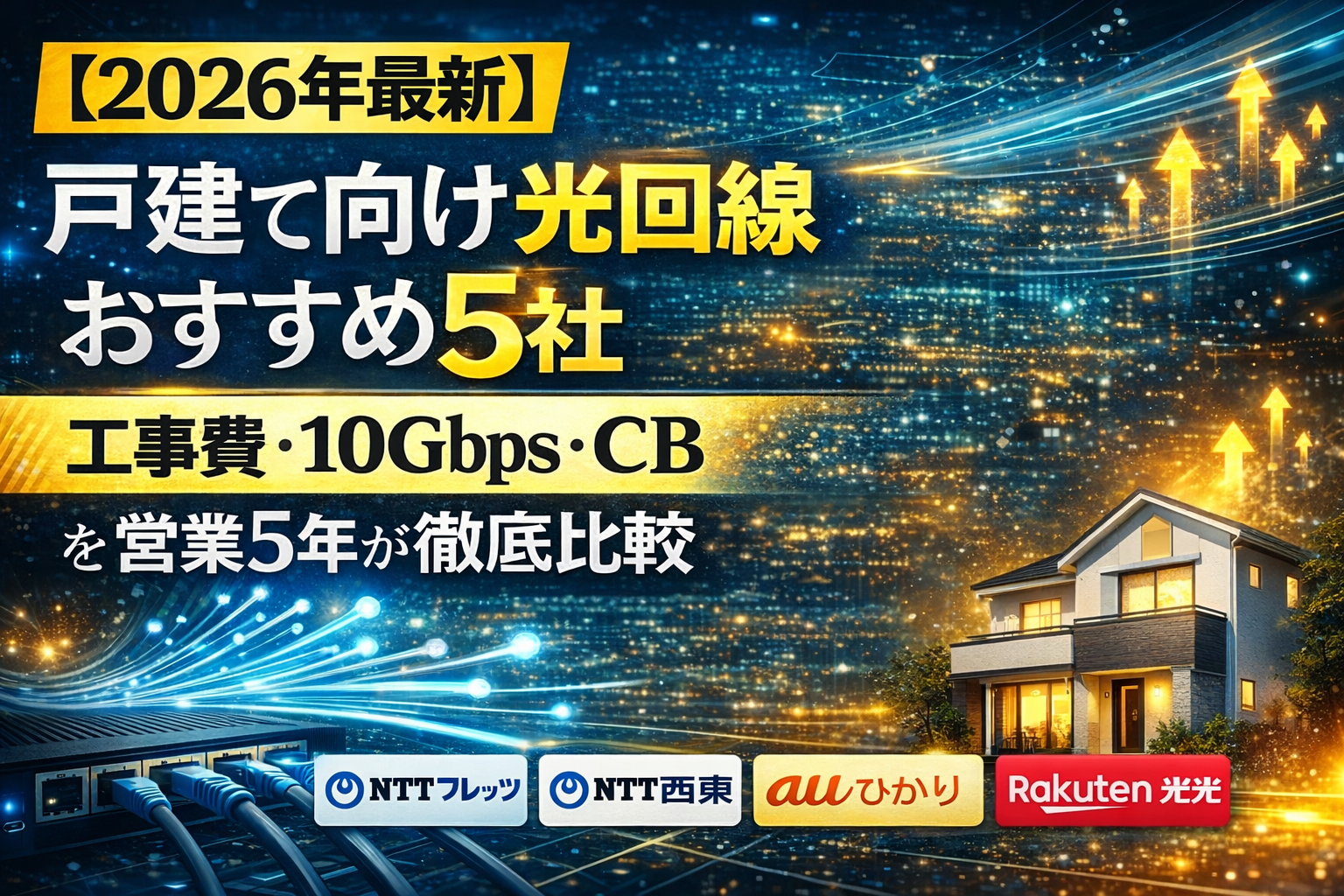 戸建ての光回線選びは、マンションとはまったく別物のルールで動きます。工事費・開通期間・配線方式・10Gbpsプランの要不要──判断軸が多い分、間違えると月々数千円を無駄払いすることに。家電量販店の光回線営業5年間で1,000件以上の戸建て案件を見てきた経験から、後悔しない選び方を整理しました。