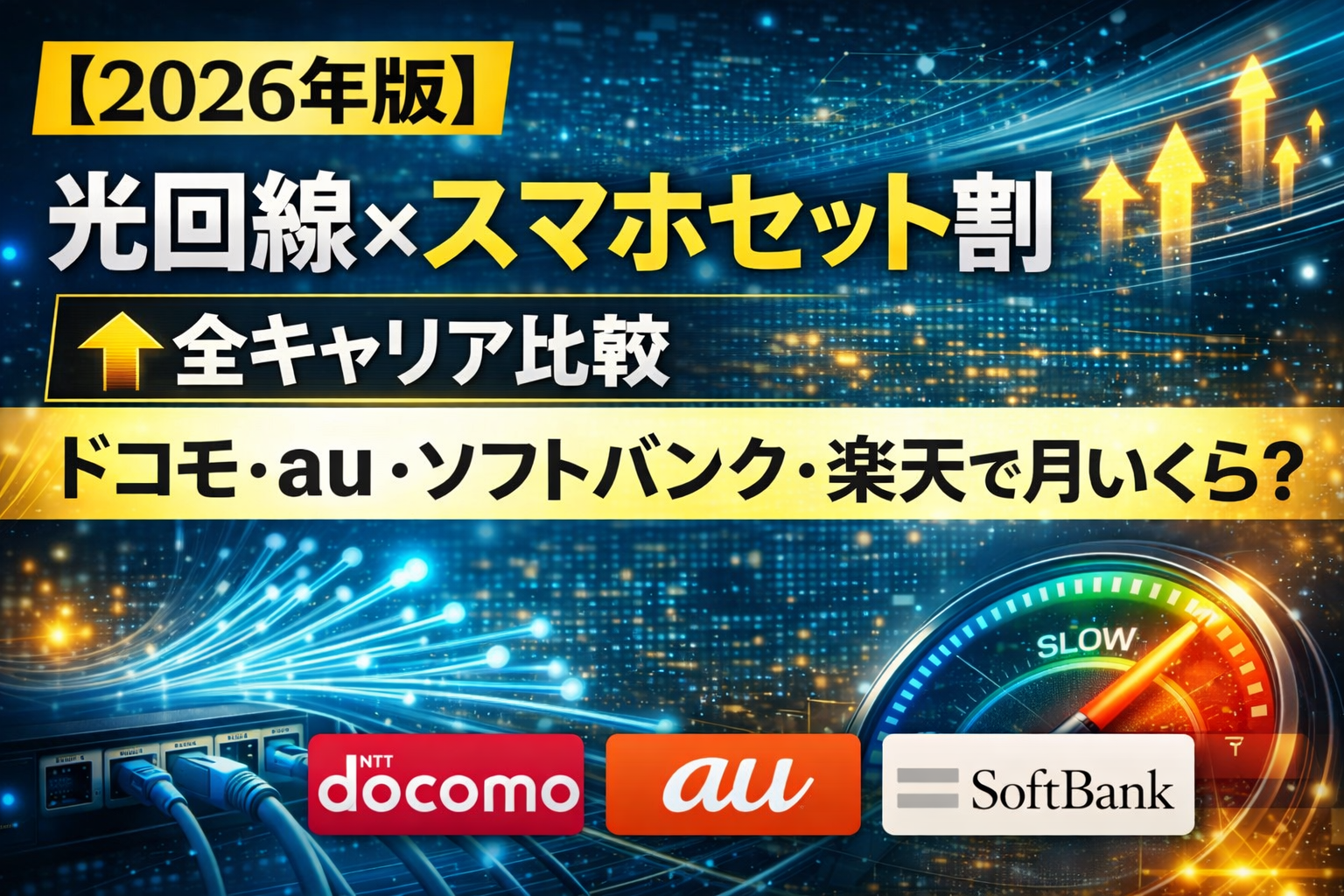 「スマホのセット割って本当にお得なの?」「家族4人いるけどどれくらい安くなる?」──光回線×スマホのセット割は、正しく組めば年5〜10万円の固定費削減になります。この記事では、家電量販店の光回線営業5年で扱ってきた全キャリアのセット割を、割引額・適用条件・注意点まで整理しました。