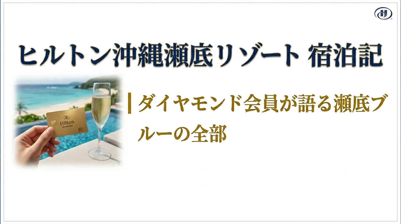 ヒルトン沖縄瀬底リゾートをひと言で言うと「日本のビーチリゾートの到達点」だ。瀬底ビーチの透明度、全室オーシャンビューの客室設計、Technogym完備のジム、9階ラウンジのサンセット——どれを取っても妥協がない。美ら海水族館まで15分、ジャングリアまで30分という立地の良さも強みだ。