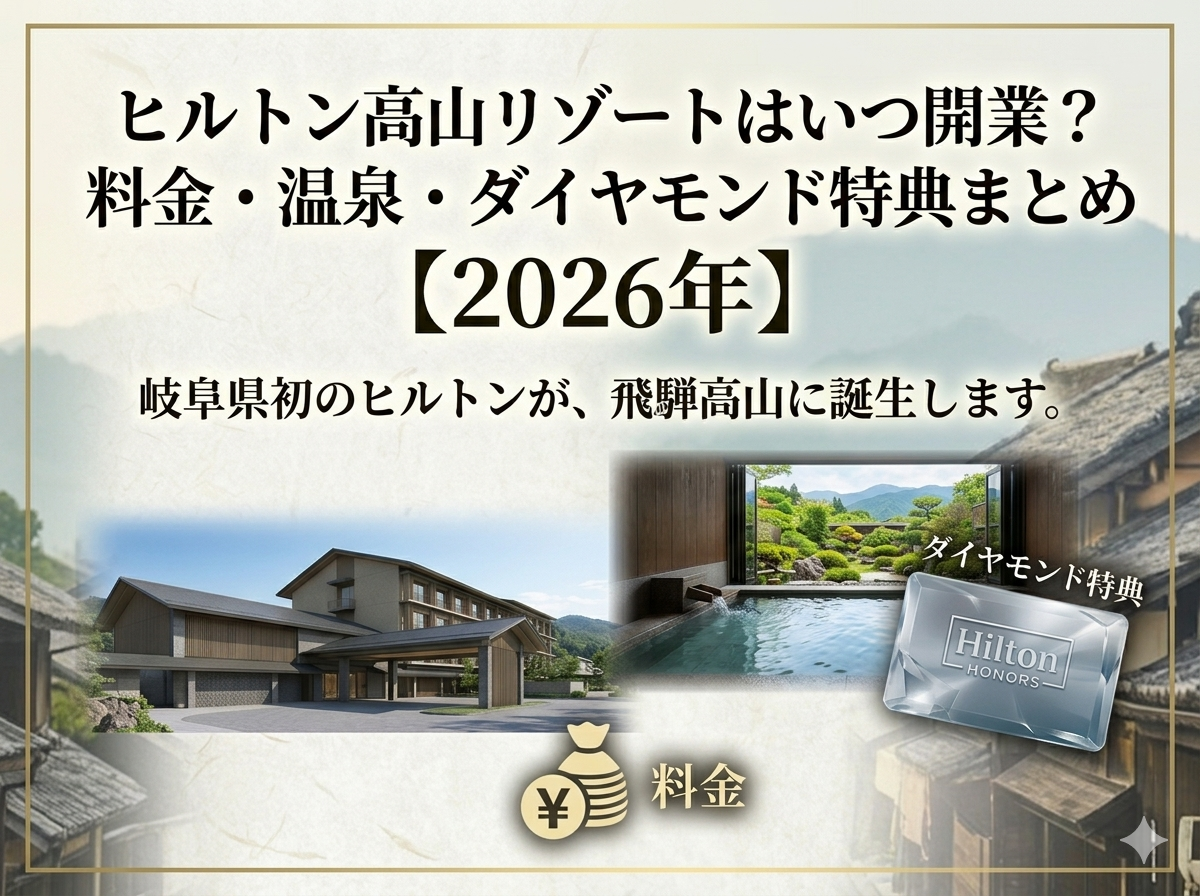 筆者はダイヤモンド会員として国内ヒルトンの9割を制覇していますが、ヒルトン高山リゾートは開業が待ち遠しいホテルの筆頭です。温泉リゾート×ヒルトンの安心感×飛騨の食文化。これは間違いなく「当たり」のホテルになります。