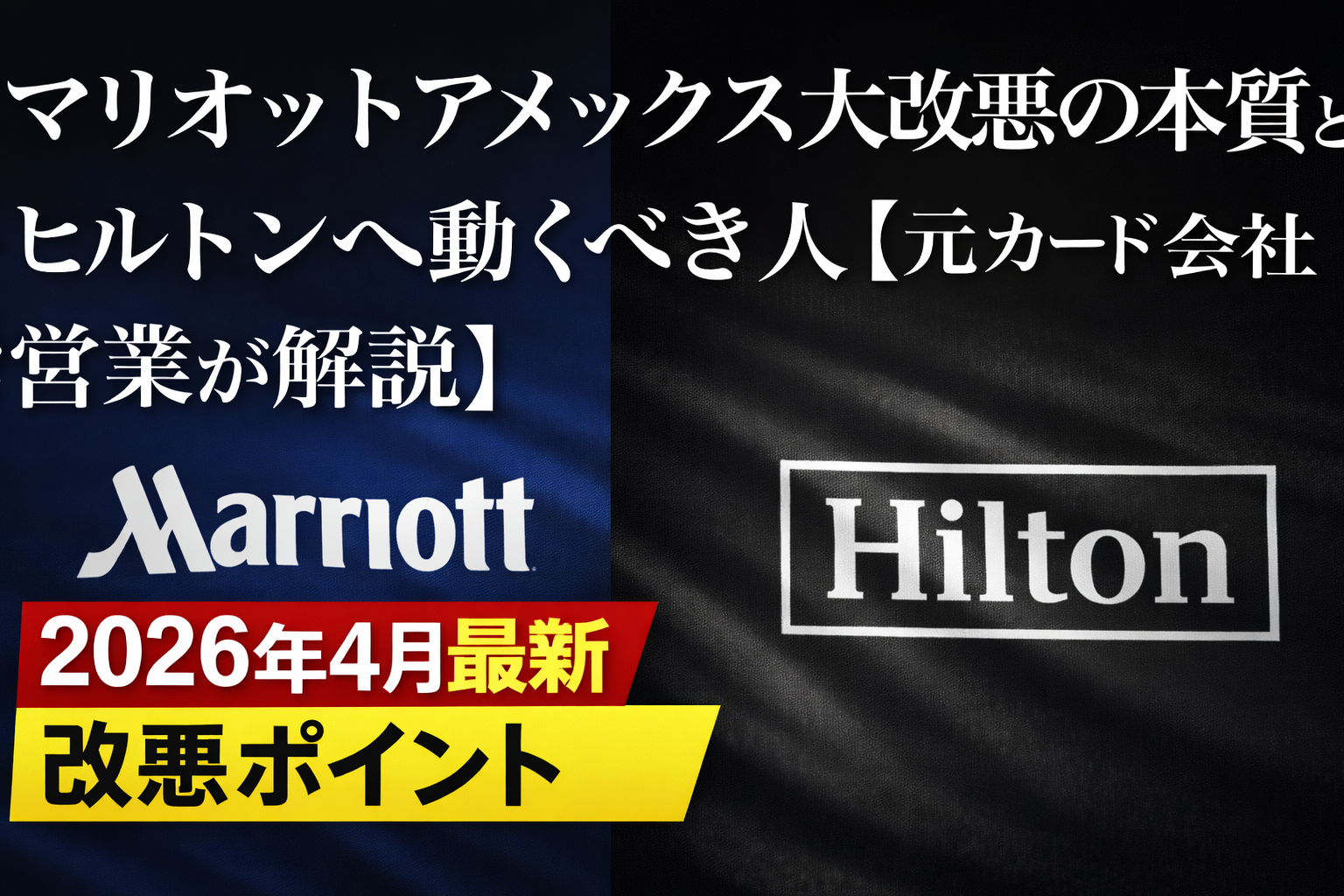私はマリオットアメックスを持っていない。でも、周囲のほぼ全員が持っている。カードが出た当初は私が知っているアメックスの社員は全員持っていた。外資系カード会社で10年以上、法人・個人営業をやってきた立場から、そして国内ヒルトン系列を9割制覇してきた宿泊経験から、今回の改悪を「カード会社の構造問題」として解説する。