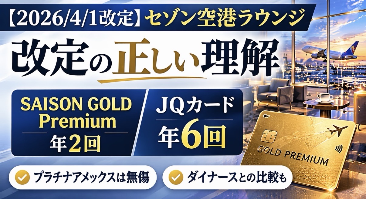 【2026/4/1改定】セゾン空港ラウンジ改定の正しい理解|SAISON GOLD Premium年2回・JQ年6回|プラチナアメックスは無傷|ダイナースとの比較も