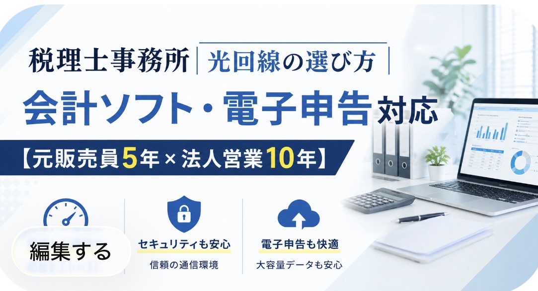【結論】税理士事務所が選ぶべき光回線は、「上り速度・固定IP・サポート品質」の3点を重視した法人プランです。e-Tax電子申告・クラウド会計(freee/マネフォ/弥生)・顧問先データ送受信が日常業務となる税理士事務所では、家庭用回線では業務止まりリスクが高すぎます。元家電量販店光回線販売員5年(個人向け)×元外資系カード会社法人営業10年以上の経験から、税理士事務所に最適な選び方を本音で解説します。 この記事でわかること